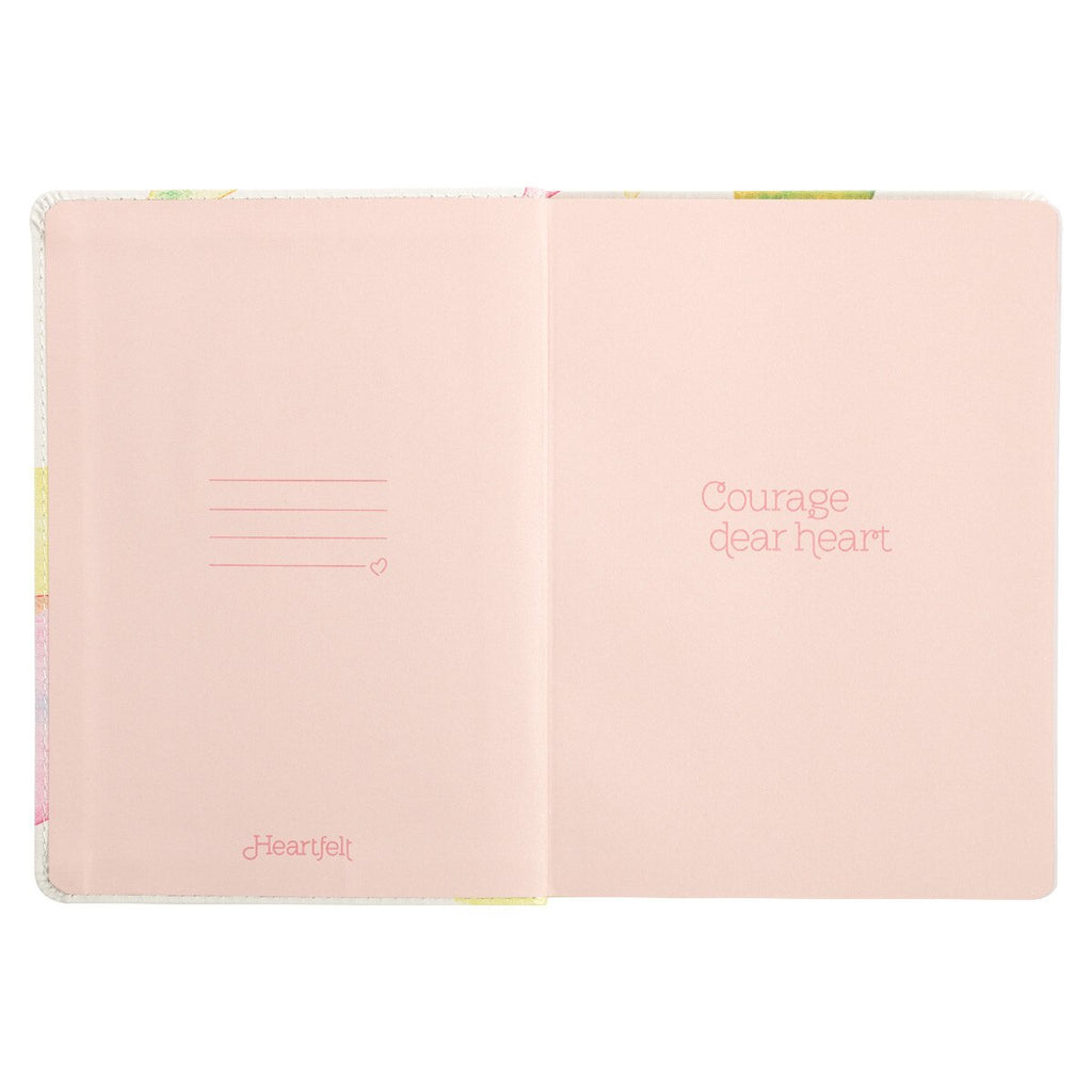 Fight fear on the pages of the Courage Dear Heart Citrus Leaves Handy-size Faux Leather Journal and live to face another day filled with courage.