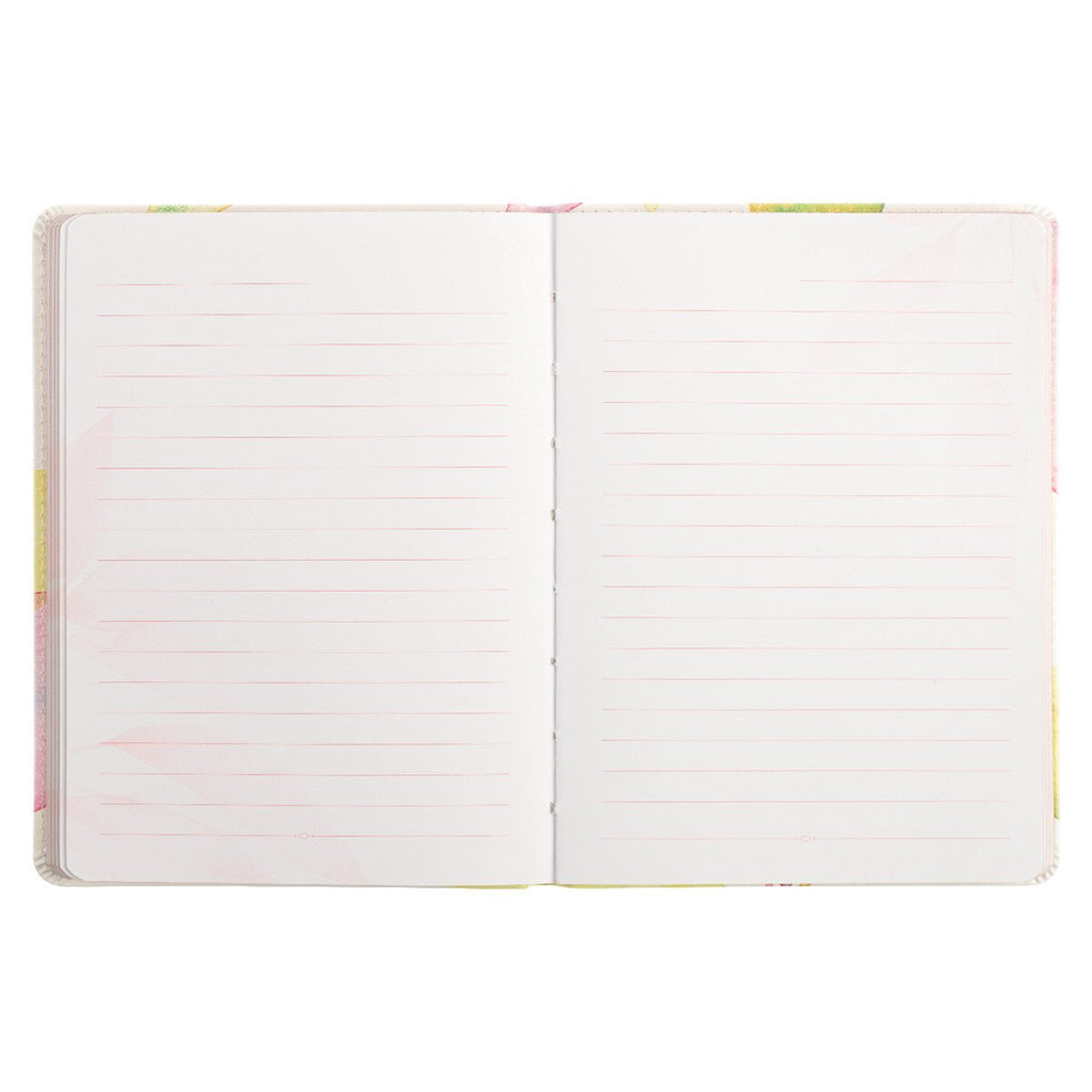 Open your journal to the soft peach-colored endsheets and write your name or a favorite quote on the lines provided opposite the sentiment. Or, if you give the journal as a gift, write a little message to your loved one and note the date and occasion. The journal's pages are lined and feature a pale pink watermarked leaves pattern. The 240 pages are gilt-edged in rose gold to match the sentiment.