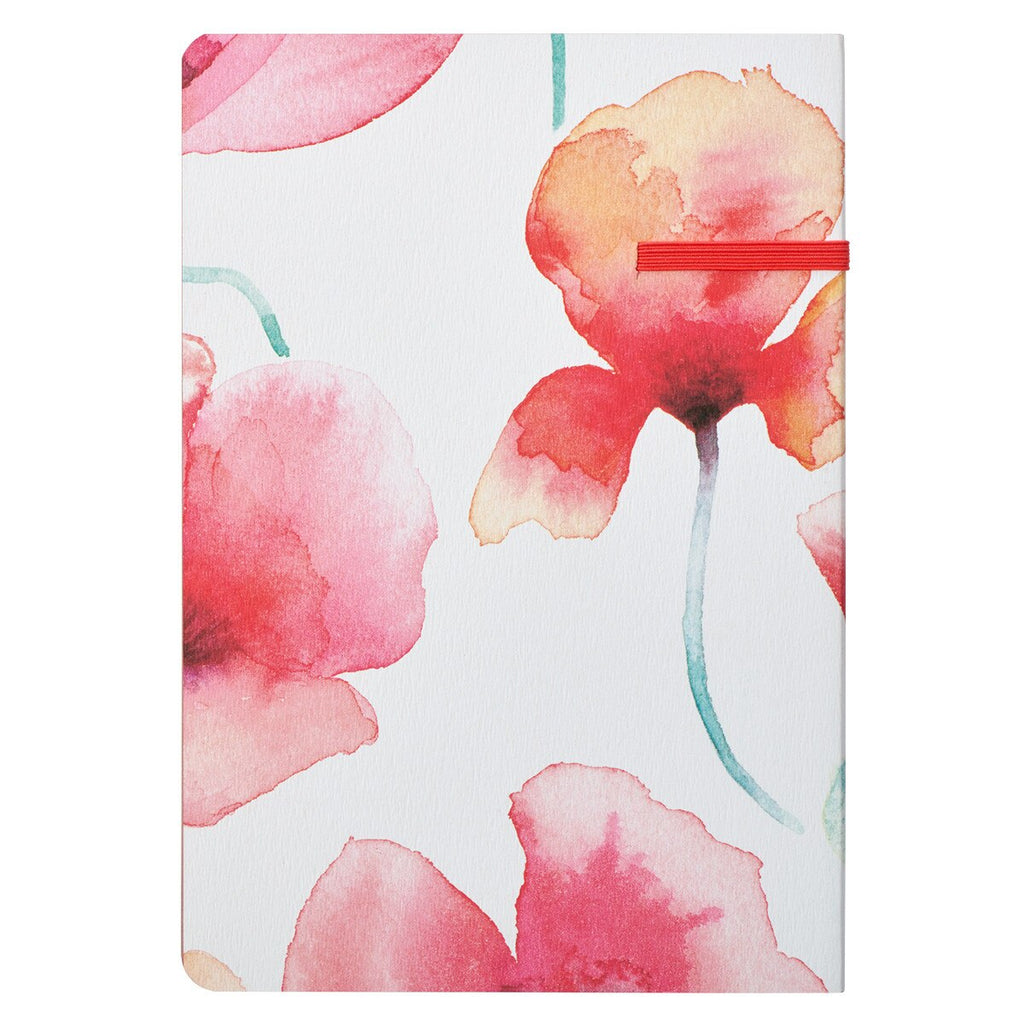 Never Give Up Coral Poppies Flexcover Journal with Elastic Closure