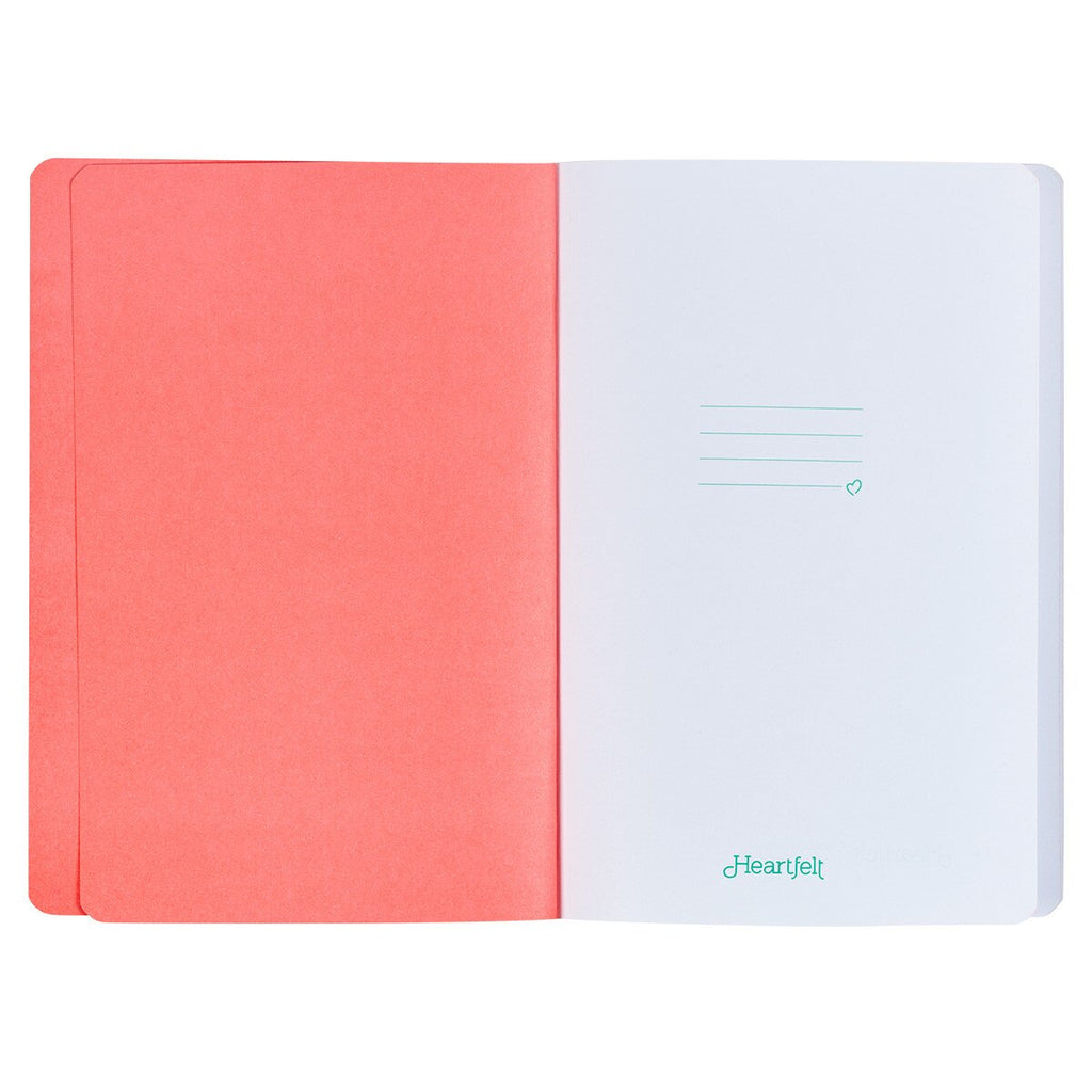 The watercolor poppy design inspires with delicate, slim stemmed brightly colored poppies. The sentiment is heat-debossed in rose gold on a teal appliquéd patch set in the top third of the cover of this flexible yet sturdy journal.